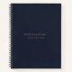 Professional notebook featuring personalised monogram name in minimalist gold colour typography on a navy blue background.