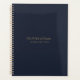 Professional notebook featuring personalised monogram name in minimalist gold colour typography on a navy blue background.