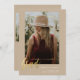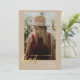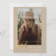 a modern minimalist design that features a calligraphy script in gold and a gold-framed photo on the front of the card, and a 2nd photo along with personalised information on the back.
