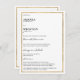A modern white and gold typography simple gold borders elegant wedding menu card.
