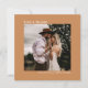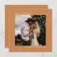 This simple card is a great way to thank your wedding guests, family, and members of your bridal party for being a part of your special day. The minimalist design features your photo on a golden tan background with white symmetrically justified text reading: Love & Thanks, with your names below.