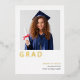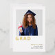 Minimalist Grad 2025 Real Gold Foil Announcement. Simple elegance with real foil for typography Grad, beneath your photo, and also for your graduate’s name with the rest of the text in black. Easily personalise the text including your message on the back and replace the sample photo with your own.