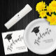 Minimalist black and white graduation with grad cap.