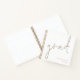 Minimalist Grad Gold Script Graduate Guest Book. Perfect for your Guests to write their good wishes, this design has elegant set script for Grad diagonally across the front and the rest of the text can be easily personalised, including the words on the back cover which is in gold. Text and background Colours can be changed if you wish via edit further.