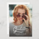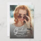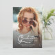 Simple modern script with two photos Graduation Announcement. Featuring a full size photo on the front with white text overlay and a photo on the reverse side with optional details.