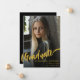 Celebrate your daughter’s college, university or high school graduation with this stunning minimalist stylish gold and black graduate photo graduation announcement card. Featuring elegant gold script calligraphy and graduate photo template, this design captures the excitement of new beginnings and joyful celebration. Personalise it with a cherished photo of your graduate using the easy-to-use photo template, and highlight event details in stunning typography. Designed by artist Catherine Sweetman, this unique invitation beautifully combines elegance with the thrill of your daughter’s achievement, making it the ideal way to gather loved ones and mark this special milestone.