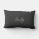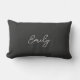 Understated and refined. This personalized dorm pillow features a soft charcoal gray background with a delicate script name, creating a calm, elevated look that fits seamlessly into modern, neutral dorm spaces. The handwritten-style font adds a personal, feminine touch while keeping the overall aesthetic clean and versatile. Perfect for layering with textured throws, neutral bedding, or preppy accents, this custom pillow brings a subtle sophistication to any college room.