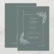 This elegant and minimalist wedding invitation features a soft green background with delicate white botanical accents, perfect for nature-inspired or rustic weddings. The invitation includes refined typography and a modern layout, inviting guests to the wedding. Ideal for couples seeking a sophisticated yet understated design, this invitation sets the tone for a stylish celebration.