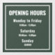 Give your storefront a clean and professional look with this Minimalist Green Opening Hours Sign. Designed in a modern deep-green background with crisp white typography, this business hours template is perfect for cafés, salons, boutiques, spas, offices, small shops, and home businesses.