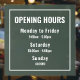 Fully customizable — easily edit your daily hours, business name, and details to match your brand. The elegant double-line frame adds a structured, polished look that catches the eye without overwhelming your space. Ideal for printing, laminating, or displaying on your shop window.