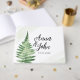 Minimalist Green Fern Wedding. Simple and trendy botanical illustration wedding guest book with watercolor stains.