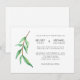 This ultra stylish wedding invitation features watercolor look green leaves on a stem, with spare black text on a clean white background.