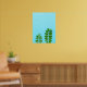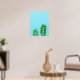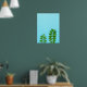 Minimalist Green Leaves on Blue Background Botanic Poster