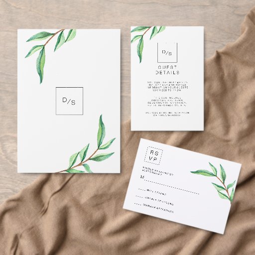 Minimalist Green Leaves on White WeddingDesigned by Christine Kovacs