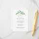 This stylish wedding reception information card features green watercolor leaves on a clean white background. The complete matching wedding suite is available here in our store.