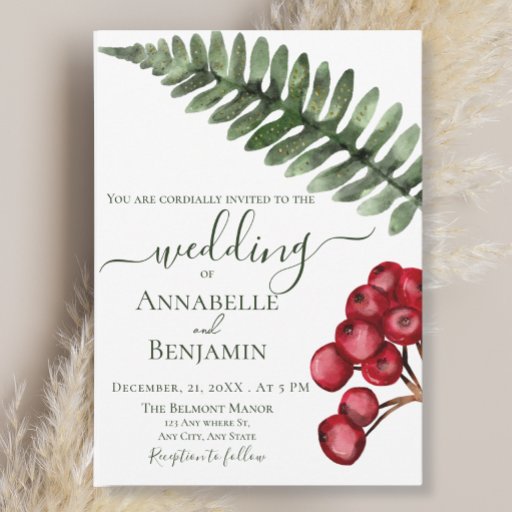 Winter Wedding Green Fern and Red Berries Suite Designed by Esma Designs