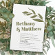 Minimalist green white olive leaves wedding invitation