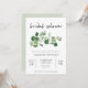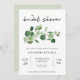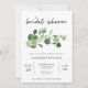 These modern, minimalist bridal shower invitations feature trendy green watercolor leaves and elegant typography.
