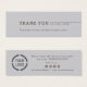 Modern minimalist text design in brown on colour editable grey background, custom your own business information and optional company logo on the back, clean and simple, unique professional thank you for your purchase insert for customer.