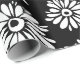This black and white floral pattern features stylized daisy flowers. It is a girly, retro, groovy print with a strong boho aesthetic and clear 70's inspiration.