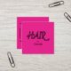 For hair stylists and colorists, a minimalist business card in a square style with cool, retro typography featuring "HAIR" in pink and black on a bright pink background. Reverse side has your basic information with ability to add or delete text lines of your preference, surrounded by an edgy black border. Great for freelance and independent artists. Message me if formatting assistance needed!