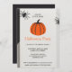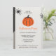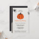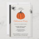 Invite guests to your Halloween soirée with this sleek, modern halloween party invitation. Featuring a bold orange pumpkin and creepy crawling spiders on a clean white background, this design perfectly balances festive fun with sophisticated style. Ideal for formal Halloween gatherings or family-friendly events.