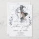 Elevate your Halloween event with this stunning minimalist invitation featuring a half-woman, half-witch portrait in elegant black and white. The detailed watercolor illustration of craws adds a touch of unique charm. Perfect for a sophisticated, modern Halloween celebration, this design combines subtlety with a hint of mystique. Impress your guests with this artistic and refined invitation.