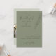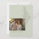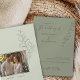A timeless wedding invitation featuring hand-drawn eucalyptus sprigs on a sage green background. Elegant script and classic serif fonts combine to highlight the couple’s names and wedding details. Add your own photo on the back. Perfect for minimalist weddings with a lightly romantic touch.
