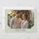 A timeless wedding invitation featuring hand-drawn eucalyptus sprigs on a sage green background. Elegant script and classic serif fonts combine to highlight the couple’s names and wedding details. Reverse of card is designed for you to add a horizontal photo framed beautifully with a thin green border. Perfect for nature-inspired or minimalist weddings with a romantic touch.