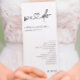 This modern wedding program features a minimalist design and a modern hand lettered handwriting script. It's set up with the text flush to the right and left, but you can click "customise" to make it centred. The back has your bridal party and family information with a special thank you at the bottom.