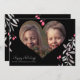 Simple minimal elegant Happy Holidays handwritten script custom photo winter holidays Christmas holiday card with delicate pink holly berry branches. Easy to personalise with your photo (heart shape), text, and signature.