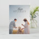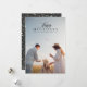 Minimalist Holiday Photo Card. Black typography photo overlay with coordinating festive greenery pattern backing.