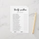 Each minimalist card poses thought-provoking questions answered in the bride's own handwriting, testing how well guests truly know her likes, story and spirit. Compare responses for amusement.