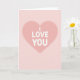 This card shows a large soft pink heart centered on the front, set against a lighter rose-pink background. Inside the heart, the words “I LOVE YOU” are stacked in rounded white letters that are easy to read and feel sincere. A neat line of tiny white dots traces around the edge of the heart, like a gentle border that draws your eye inward. Behind it all, small irregular white polka dots are scattered across the background, adding a relaxed, sweet look. The overall scene is simple and calm, with no characters—just color, shape, and a clear message of love. It feels meaningful to give because it says what you might be shy to say out loud, and it does it in a soft, caring way 🥰. Whether it’s for a partner or someone you care about deeply, it’s a quiet reminder that they matter ❤️. Hope it helps you share your Valentine’s Day.