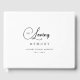 Minimalist "In Loving Memory" celebration of life, funeral guest book, elegant, lovely handwriting font, black & white.