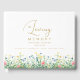 Minimalist "In Loving Memory" celebration of life, white funeral guest book, elegant, lovely handwriting font and wildflowers.