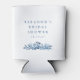 Minimalist Indigo Blue Ink Botanical Bridal Shower Custom Can Cooler