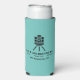 A promotional can cooler for your land surveying/mapping/development company, features black land survey icon with black customisable text on teal background .