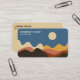A business card template with a simplified landscape design in an attractive palette of colours on the front. Along with company name and business type. Name and other contact details are placed on the reverse side.