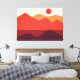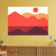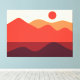 A bold minimalist landscape design in shades of red, orange, red-brown, and cream.
