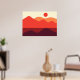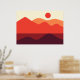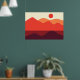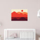 A bold minimalist landscape design in shades of red, orange, red-brown, and cream.