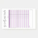 This weekly habit tracker features a minimalist table design divided into 20 rows for habits in alternating lavender and white, 1 wide column to write your desired habit, and 7 narrow columns to put a mark for each day of the week. At the top right of the table is a blank template to put the date of the week you are tracking. Below the table is a blank template for notes. You can customise the font style and colour of the text, as well as the lavender/purple colour of the rows in the Design Tool.