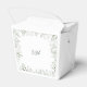 A refined wedding favor box featuring a delicate frame of hand-drawn leaves, surrounding a custom monogram at the center. This design embodies the essence of understated luxury — perfect for elegant garden weddings or outdoor receptions. The deep green color palette represents harmony and love, while the leafy detailing keeps the look natural, modern, and timeless.
