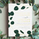 Beautiful simplistic gold foil eucalyptus greenery drawing in a simple wreath style design on a dark green background with modern gold and white typography. A minimalistic botanical design that is easy to personalise using the template. Original artwork by artist Catherine Sweetman