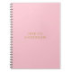 Keep your notes and ideas in this minimalist and elegant notebook personalised with your name on light pink background. You can change the colour of the background.
