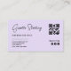Add a touch of elegance and creativity to your brand with this minimalist lilac purple business card. Featuring a refined script name paired with clean modern typography, this design includes customisable text fields for your company name, job title, email, website, and social links, plus a built-in QR code for seamless digital sharing. The soft lilac tone offers a professional yet artistic aesthetic—perfect for beauty experts, designers, photographers, stylists, and consultants. Understated and sophisticated, this layout is fully editable and print-ready for your modern brand.