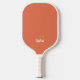 This modern pickleball paddle design features a stylish lime green background on one side and burnt sienna on the other, with a text line for your name or initial in blue handwritten script text for a look that is simple and stylish, yet professional. Makes the perfect gift for Christmas, birthday, Mother's Day, Father's Day, Grandparents' Day, graduation and more.