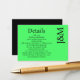 Minimalist Lime Green Enclosure Details Card