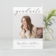 This modern minimalist graduation party invitation template, features a trendy calligraphy script font and simple lines. The classic black and white design is unique on trend style. Easily edit this online template. THE SAMPLE PHOTO IS NOT INCLUDED. REPLACE WITH YOUR OWN PHOTO BEFORE ORDERING.