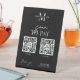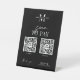 Minimalist Payment Scan to Pay sign with space for two QR codes, your business logo and social media links. Add your paypal, venmo, apple pay or any other electronic payment method scannable URL codes and make your personalised payment pedestal sign. This modern sign features black & white design with trendy fonts and social media icons. Make it easier than ever for your customers to pay with a phone or tablet with this custom payment pedestal sign.
